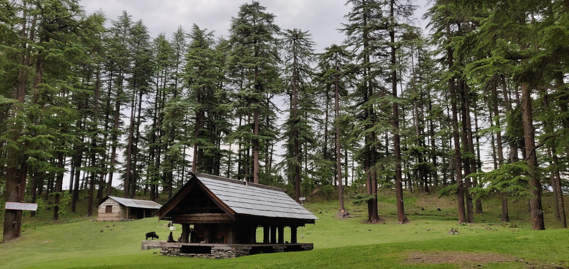 It’s surrounded by cedar trees, and the ground is a lush green mat of Himalayan grass.