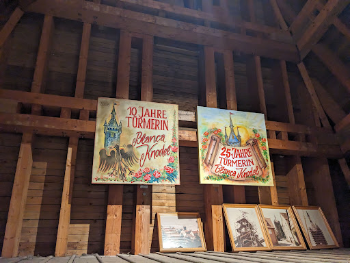 Read moreEn esta ciudad de Bad Wimpfen que en su centro histórico está llena de bonitas casas entramadas, donde pasear por él es un “no dejar de hacer fotos”, está esta interesante torre al lado del ayuntamiento que data del año 1770 aproximadamente, es el símbolo de la ciudad. Con sus 58 metros de altura, recibe su nombre por su techo de pizarra. Desde lo más alto se tiene una amplia vista del casco antiguo y el valle del Neckar que es un regalo para la vista. En el interior de la torre hay un pequeño museo con muestras de restos de la época y paneles de la construcción y evolución de la torre. Las cuatro primeras plantas son de acceso libre, en la quinta (dato curioso), vive una familia desde hace muchas generaciones, y ellos son los que te darán acceso al observatorio si se desea con un coste de 3€ para los adultos. Normalmente los lunes suele estar cerrado, sin embargo nosotros hoy hemos tenido la suerte de encontrarla abierta (imagino que por las...