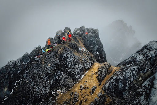After hours of technical climbing, we emerged onto the summit ridge of Carstensz Pyramid. The clouds that had been our constant companions parted just enough to reveal our position – perched at 4,884 meters (16,024 feet) on the highest point between the Himalayas and the Andes. The weather, as if honoring the magnitude of the moment, gifted us with perfect conditions: cloudy but remarkably still, without the fierce winds that often guard this remote summit.