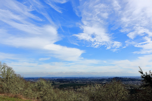 Good place to take a walk with opportunity to ascend to the top of Bald Hill (highly recommended). There are three parking areas to access Bald Hill. The Benton County Fairgrounds to the East, the NW Oak St. access, and the SW Reservoir Ave access. All 3 are connected by a paved walkway that leads to the base of Bald Hill. The walkway is multiuse; bicycles are frequently using the path, too. Keep your ears and eyes out for them. There are various trails that connect to the walkway which allows for a nice walk depending upon what you want to do. You can walk partly around the base, or even walk from SW Reservoir to NW Oak street and back. There is an old barn at the Northeast base of the hill. There is an off leash dog area hat is marked near the barn. A portable toilet is located there as well. A trip to the summit is not difficult and doesn't take very long. The West side of the hill near the top has a bench with a great view of Mary's Peak and the Fitton Green Ridge. There is also a bench at the summit near the summit marker that gives a decent view to the Southeast. An important note: Stay on the trails. Private property surrounds the entire area, and in a number of places, the trail crosses a portion of said property. The property owners granted an easement to the county for all to enjoy, so the rules are pretty simple...leave no trace and stay on the trail.