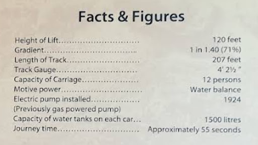 Lovely part of history, as well as being very interesting and unique from an engineering point of view. Saltburn Cliff Lift is a funicular railway providing access to Saltburn Pier and the seafront from the town. The cliff lift is the oldest operating water-balance cliff lift in the United Kingdom. It was constructed between 1883 and 1884 to replace a vertical cliff hoist and improve access for tourists to the seafront and beach. The cliff lift has a height of 120 feet and a track length of 207 feet, resulting 71 per cent incline. A pair of 12-person cars, each fitted with a 240-imperial-gallon water tank, run on parallel standard gauge tracks; by removing or adding the water to their tanks, movement is achieved, regulated by a brakeman at the top. The lift opened in June 1884. The original cars have been replaced With aluminium counterparts and the top station restored, but little of the underlying mechanism has been changed since it was installed. The lift remains in regular use between March and October each year. It is one of Saltburn's most popular tourist...
