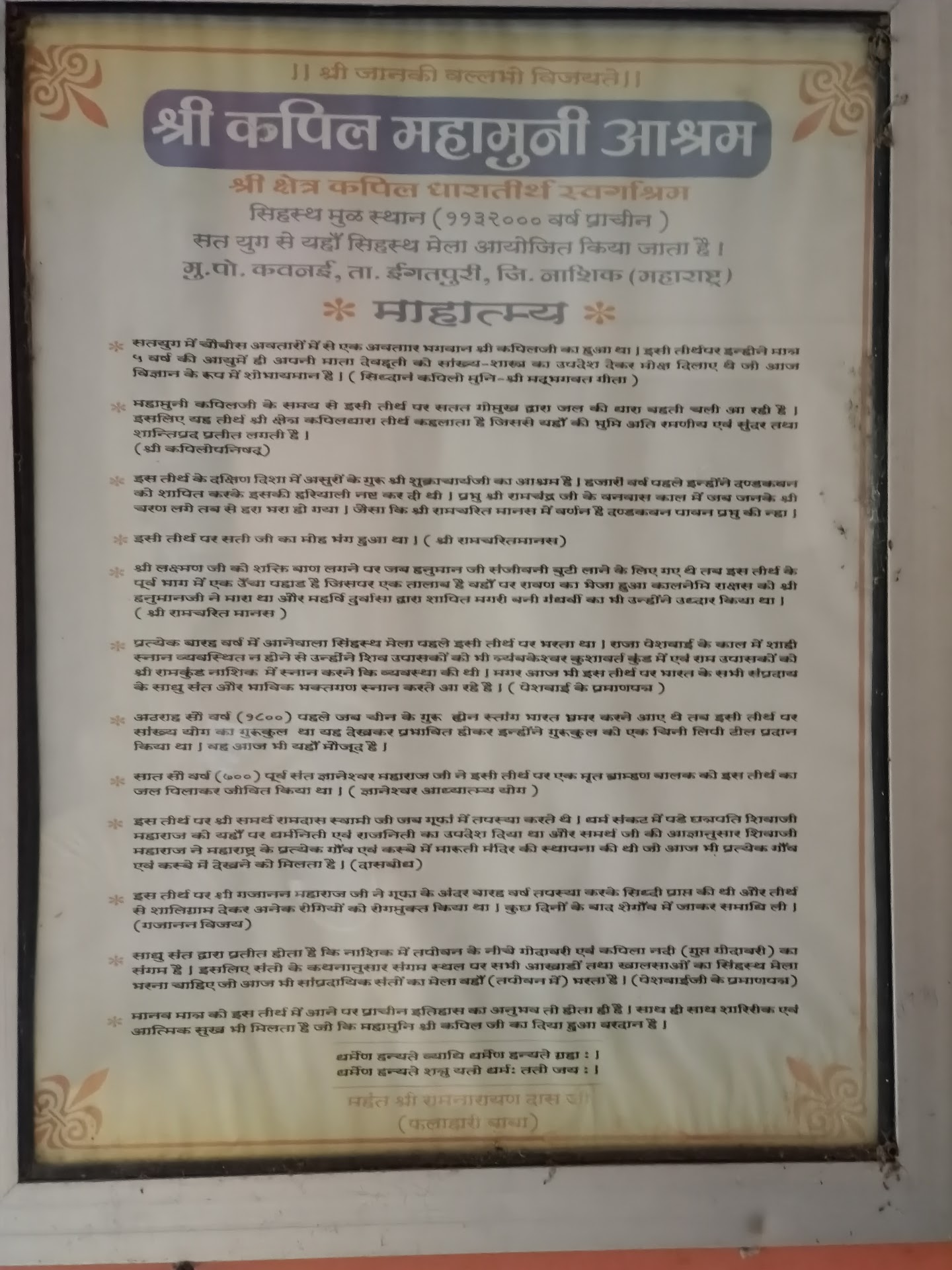 Kavnai Tirth is 15 km from Igatpuri. It was a very important place in history. The kumbh mela officialy starts from this place. It is believed that by Adeesh from Shri Swami Samartha Maharaj, Shri Gajanan Maharah ( Shegaon) done tapasya for 12 years and then became visible in Shegaon. The great traveller from China Hsuan Tsang ( We have studied in school history) , also visited this place and gave a big circular disk as a present to this place. People can still see this disk inside the temple. There is also a Temple of Kamakshi Devi, which is under renovation. The full area is surrounded by big mountains, Sometime will come in monsoons to visit when there will be lot of greenary.