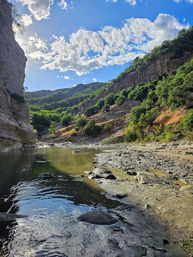 You leave the car at the parking lots before the river. We paid 200 ALK for the whole day. Than we entered the canyon midday, the baths were full so we continoued further on the river. Quickly you get embraced by the rocks as you walk. At the begining there is plenty of visitors which than slowly decrease in numbers. By about half hour you stay alone and enjoy the walls by yourself. The walk continoues and after two smaller side streams come in it becomes just so much more interesting. In places it gets so narrow so you can almost touch both sides at the same time. The river was shallow, never more than knee deep. We came out at the second bridge by hydroplant (to our huge disappointment), and returned via well seen path back. I recommend to take whole day for this, we walked abput 4h upstream - with lunch, stops and 2h on the path back. The river part is not slippery but good shoes or sandals are needed, and river stones sometimes move, so you should watch your step. Do not enter the narrow parts if you visit...