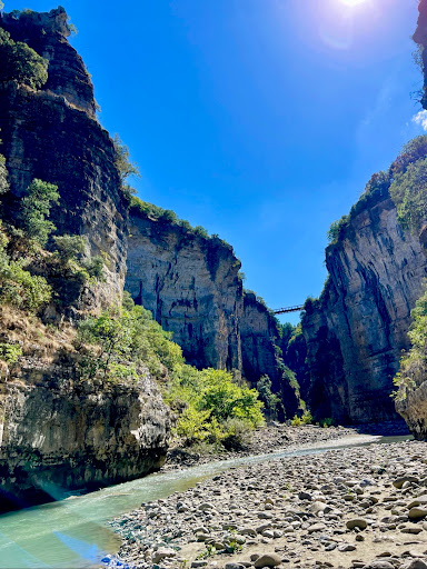 Read moreOpgepikt in Berat om 8.35u. Na een ritje van zo’n 1,5u aangekomen bij het base camp. Aldaar werd gevraagd een waiver te tekenen en kregen we een wetsuit, zwemvest en helm aangeboden. Na een korte rit per minibus werden we stroomopwaarts afgezet, vlak voor de start van de Osumi canyon. Het is hartje zomer, dus laag waterpeil. Raften is nu niet mogelijk, maar een hike door het water kan prima. Wat een prachtige omgeving! Guides Red en Lucas hebben ons begeleid. We sprongen van wat rotsen, lieten ons meevoeren door de stroming en konden hier en daar zwemmen. Halverwege een korte stop voor koffie, een koekje en een nectarine. Aan het einde een klim omhoog om daar weer opgepikt te worden door de minibus. Na het omkleden een ritje naar een nabijgelegen restaurant voor een Albanese lunch! Heerlijk eten! Op de terugweg naar Berat troffen we een flinke natuurbrand, het was verschrikkelijk te zien hoeveel schade deze had aangericht. Door de brand werden we tegen gehouden door de lokale politie, maar na een half uur konden we gelukkig doorrijden (diep respect voor onze chauffeur die vlak onder de vlammen door reed).
