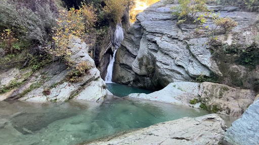 Read moreOn our way back from the gorgeous Osumi Canyon, we stopped off for a quick visit to the Bogove waterfall. Not that I regret it, but I have to agree with some of the previous reviewers that there is no charm to this experience. Firstly it's a 4x4 gravel road (not a hiking path) with concrete "bridges" that goes uphill and provides no shade. The walk up there is longer than you expect and the sun is grueling. The small area of the waterfall is EXTREMELY packed with people, to the point where you have to wait for someone to step out of your way to hop onto the next stone. Teenagers jumping off the cliff into the deep part of the freezing water and other rocks full of people perched with their cell phones taking photos of the dare devils. We were hoping for a quiet natural spot, but got the opposite. There must have been at least 70-80 people there already including local vendors cooling off the beers and sodas in the stream. If you're already in the area and get there really early in the morning then maybe yes, but otherwise there are many much more amazing places quite nearby to explore without the crowds (Osumi Canyon...