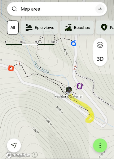 I’m really unsure how the blue path works. It goes from the campsite you pass on the road in, but the north side of the river has huge cliffs, so I couldn’t see where it comes down.