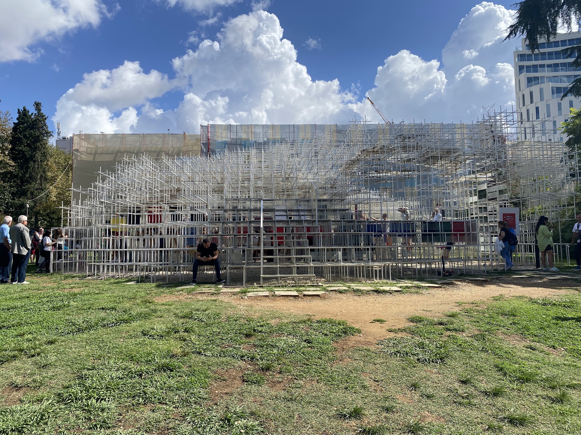 Read moreThe Cloud is an art installation placed in front of National Gallery of Arts in Tirana, Albania. Since 2016, the Cloud has served as modern art space for cultural events in Tirana. The Pavilion is a delicate, three-dimensional structure; each unit comprises fine steel bars of 800 and 400 mm rectangles. It forms a semi-transparent, irregular canopy, simultaneously protecting visitors from the elements while allowing them to remain part of the landscape. The footprint of the structure is 350 square-metres and the Pavilion has two entrances. A series of stepped terraces provide seating areas that allow the Pavilion to be used as a flexible, multi-purpose social space. The delicate quality of the structure, enhanced by its semi-transparency, creates a geometric, cloud-like form, as if it were mist rising from the undulations...