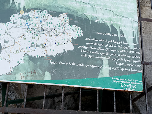 غار جماعة بلدية بوحمدان .قالمة تقع مغارة غار جماعة بجبل طاية الحدود بين ولايتي قالمة وسكيكدة،والذي يعد من أروع المناطق السياحية بولاية قالمة وأغربها بفضل ما تحويه من مناطر خلابة ومن أسرار غريبة ظلت مدفونة على مر العصور و التي تعود إلى عصور ما قبل الميلاد وكانت من أكبر الرموز الشاهدة على التواجد الروماني بالمنطقة بحيث كانت في حدود سنة 210 ميلادية معبدا للإله الروماني باكاس الذي كان الناس يأتونه من تيبليس (سلاوة عنونة حاليا) من أجل التعبد والتقرب إليه وتقديم الهدايا والقرابين على شرفه خاصة خلال موسم الربيع، أين كانت تقام الاحتفالات والمراسيم وكانت تلك الزيارات تخلد بكتابات على جنبات المدخل الرئيسي للمغارة والتي لاتزال موجودة لحد الساعة منقوشة في أرجارئها. سحر المكان وقيمته التاريخية والسياحية أثار فضول الفرنسيين الذين أولوه كامل العناية والاهتمام منذ وصولهم إلى المنطقة وقيامهم بزيارة المكان في عدة مرات ،أهمها زيارات الاستكشاف التي كان يقودها الجنرال فايدارب ليأتي الدور بعده على عالم الرخويات بورقينا الذي زار المنطقة في رحلة إلى الجزائر من أجل الدراسات حول مقابر الدولمن بالركنية القريبة من المنطقة قبل أن يحدثه صديقه لوتوغنو عن المكان الذي قال عنه بأنه من أجمل وأروع ما شاهده في حياته ، وهو ما جعل عالم الرخويات يزور المكان ف23 ماي1867 في رحلة كان مرفوقا فيها ببعض جنود فايداردب و سي مختار بن طبولة دليله ومرشده في الكهف، وبعدها كانت له زيارة ثانية في جويلية من نفس السنة وهما الزيارتان التي تمكن من خلالهما السير في طول يفوق 1200 متر والتوغل في عمق يفوق 400 متر اكتشف خلالها العديد من العظام لمختلف الحيوانات التي تعيش بالمكان (21 نوعا من الحيوانات أهمها فصيلة الدببة) التي تعود الى ما يفوق 8500 سنة قبل الميلاد كما قام أيضا بتحليل الكتابات الموجودة (عددها 64) أغلبها توجد على المدخل الرئيسي للمغارة وبالداخل. وهذا ما أكده في كتابة بعنوان:” تاريخ جبل طاية مغارة الجامع الكبير المؤلف سنة 1870 ” و الذي ضمنه مخططا لكل المناطق والقاعات المستكشفة وهكذا توالت زيارات الفرنسيين إلى المكان الذين كانوا ينقشون أسمائهم وتواريخ دخولهم على مر السنين والتي لاتزال موجودة لحد الساعة أغلبها تعود الى سنوات 1894 ’1907 1921_ 1938 1946 هذه الأخيرة تتواجد بقاعة الشلالات كانت خلال عيد الصفح حسب ما هو مدون على جدران القاعة. وهكدا ظل المكان يسقطب اليه للزوار الفرنسيين من هواة ومستكشفين و يثير اهتمام السلطات الفرنسية التي قررت في مداولةللمجلس البلدي بقالمة سنة 1935 اقتراح مشروع تهيئته والتقدم بطلب إلى الحاكم العام بالجزائر يلتمس من خلاله شق الطريق المؤدية إليها وتهيئتها. وهكذا ظل المكان بعيدا عن أعين السلطات رغم توافد العديد من الزائرين والمستكشفين إليه خلال سنوات السبيعنات والثمانيات وهو ماحمله على عاتقهم مجموعة شباب البلدية المنظوين تحت غطاء الجمعية التي تحمل تسمية المغارة التي تأسست لاجل حماية الموقع ومناشدة السلطات للاهتمام به وتهيئته وكذا التعريف به بكافة الوسائل الممكنة، وهي المهمة التي بدأت تأتي اكلها من خلال الرواج الاعلامي الكبير لهذه المغارة وتزايد عدد المتوافدين اليها بأعداد هائلة من مختلف ولايات الوطن،وهو ما أثار اهتمام السلطات المحلية والمركزية بالمكان من خلال زيارة الوالي للمكان يوم 28 ماي 2015 وزيارة معالي وزير الثقافة يوم 20او 21جوان 2016 بطاقة تقنية للمغارة يقع غار الجماعة بالجهة الشمالية الشرقية لجبل طاية تقابله مساحة ارضية شاشعة المكان ,أمتار الأولى من المدخل الرئيسي عبارة عن نفق صخري ذو شكل اسطواني طوله 38متر عرضه وارتفاعه لا يتجاوزان 3 امتار ارتفاعة لا يتجاوزان 3 أمتار،و الذي يطل مباشرة على قاعة الهبوط (salle de la déscente) التي يقدر طولها ب 200متر و تتميز بانحذارها الشديد نحو الاسفل تزداد اتساعا وارتفاعا كلما تقدمنا اكثر حتى ان ارتفاع سقفها يقارب 15متر ,الظلام بها دامس يستحيل التقدم دون إنارة ,و