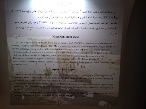 Read moreThe Palace of Rais (Arabic: قصر الرياس), also known as Bastion 23, is a classified historical monument located in Algiers, Algeria. It is notable for its architecture and for being the last surviving quarter (houma) of the lower Casbah Consisting of three palaces ( number 17,18 and 23) and six houses, whose history began with the construction of Bordj-Ez-zoubia in 1576 by the Dey Ramdhan Pasha in order to reinforce the means of defence of this side of the Medina, this quarter ended up being detached, and even isolated from its traditional environment following the restructuring of the lower Casbah during the French period. The parking is not far from the Palace. There's an office where you should pay an entrance ticket which cost 200DA( around 1 Euro) / Adult and 100DA/Student, kids under 12 years old are exempted. You can have a guide upon request ( not sure if they give a tour in English but everything is written in Arabic, English...