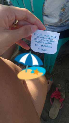 Read moreTout d'abord stationnement payant à 200 da comme dans presque toutes les plages, mais néanmoins disponible et assez facile, Des gens t'agressent directement à la recherche d'un billet pour une table et chaises même si tu ne demandes pas, ayant pas de parasol on a décidé de louer un avec table, il nous donne 4 chaises alors qu'on était deux et c'est tarifé à 2000 da pour table parasol et 4 chaises ce qui nous a mis un peu en colère, mais comme nous étions venu pour prendre du bon temps on a laissé aller, Y avait du monde, trop d'enfants et vacarme, des gens te bloquent la vue avec leur machine à barbe à papa et pour conclure la plage était sale, Nous nous sommes forcés à passer du bon temps quand même malgré les circonstances, mais je n'y retournerai pas...