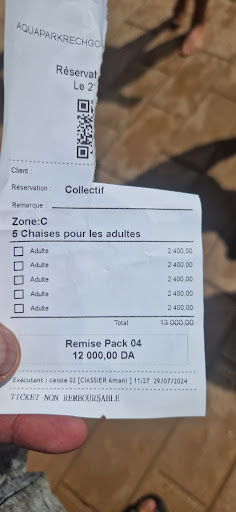 Trop déçu. Je ne suis pas de nature trop critique .MAIS.... 1-On commence par le parking ( non aménagé tu roule dans la terre aucun traçage) 200 da parking et personne pour vous orienter donc je vous laisse imaginer l'anarchie de stationnement. 2 - une queue interminable ( 1h30 ) . 3- le prix est excessif ( 12000 da pour 3 adultes et 2 enfants) enfin j'ai découvert dans ce parck que ma fille de 7 ans est une adulte et mon fils de 12 ans j'avais un petit doute lol ... 4- à l'entrée ils vérifient ton sac en cas où tu as ramener un harag dans ton sac à dos ( sandwich d'extérieur) compréhensible c'est la règle partt .néanmoins après vérification il faut nous guider.a savoir qu'il ya des zones. Nous étions dans la zone C . Remplie ..après 20mn débouts un membre du personnel viens vérifier nos ticket ah zonne C il n'y a plus de transats de disponibles .il faut prendre des chaises ( la suite je la dirais pas pour rester respectueux) je me suis imposé dans une autre zone ( logique 12000 da pour passer une journée sur une chaise dans le café de du parck !)