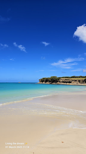 ย ย ย Read moreWe walked to Fort James Beach from the cruise terminal at St John's, a walk of about 40 minutes. We arrived really early, just before 9, on a beautiful sunny day. The soft sand and the beautiful clear blue water was so inviting. The beach was really clean, no sign of litter, and there are bins by the shop and bars.