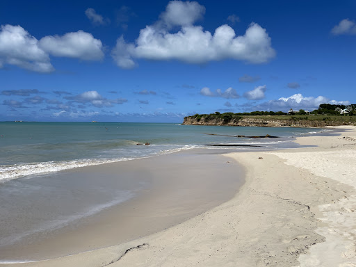 Palm trees and Seaside Grape trees with some grassy areas are present at the side of the road directly next to the beach. As I often say "To get more coastal than this is to be driving in the water", This is another one of Antigua's Drive in Beaches (Right next to the roadside), a great option for casual sea bathers and other users of the beach and rather extensive surrounding areas.