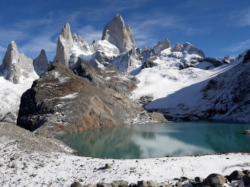 Absolutely gorgeous scenery and a beautiful hike to get there. Take a water bottle, dress in layers, and use sun cream. The trail head begins at the end of Avenida San Martín in El Chalten. During the first hour of trekking the path ascends steeple up to a natural viewpoint of the valley of the De las Vueltas river. The trail continues up along the Del Salto stream entering the valley towards Mount Fitz Roy. The trail becomes more flat here and there is an interpretive sign. The path follows always up along the Del Salto stream to the drainage area of Laguna Madre e Hija. You will arrive at Poincenot Base Camp (the most popular camp site in the National Park) and after crossing the Blanco River the trail will ascend steeply for the last kilometer, over 400 m climb. This will require more than an hour of effort. The trail finishes at the ridge of the old frontal moraine of the De los Tres Glacier (enormous formation in the shape of an arch that currently contains the lagoon, formed by the action of the advance and subsequent glacial retreat) with an extraordinary view of the lagoon and De los Tres glacier. This is the closest view to the granite wall of Mount Fitz Roy and the...