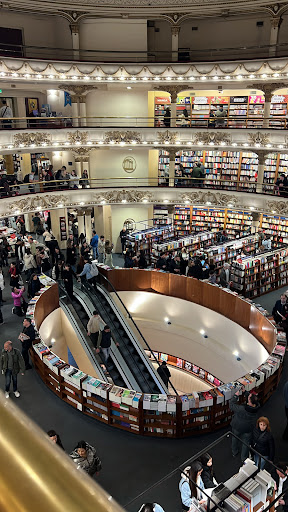 Read moreHoy Visité la Librería quedé maravillada . El lugar es imponente desde que uno entra: columnas majestuosas, espacios amplios y una arquitectura que ya de por sí vale la visita. La librería tiene un surtido enorme de libros para todos los gustos, y además me sorprendió gratamente la sección de vinilos, con una variedad excelente para los amantes de la música. La atención es muy buena, siempre dispuestos a orientar o recomendar. Entre la planta baja y el primer piso se pueden recorrer estanterías infinitas, descubrir ediciones especiales y perderse entre pasillos llenos de historia. Un detalle que suma mucho es el sector de café, donde uno puede sentarse a disfrutar la atmósfera del lugar mientras hojea un libro recién comprado. Sin dudas, es un espacio que mezcla cultura, belleza y calidez. Un sitio imprescindible para cualquier turista en...
