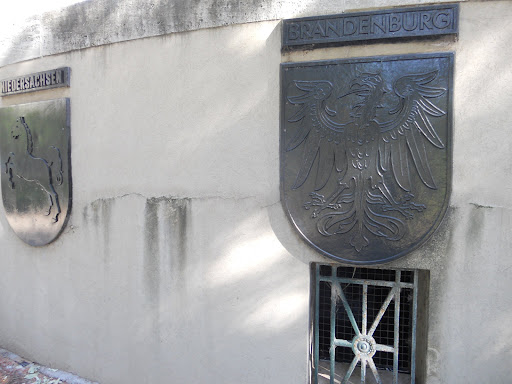 Al frente cuenta con una escalinata circular dividida en siete sectores. Cuenta además con una placa de bronce que homenajea al estadista alemán Konrad Adenauer. Las paredes posteriores al monumento fueron tapizadas con relieves de los escudos de los 16 estados alemanes...