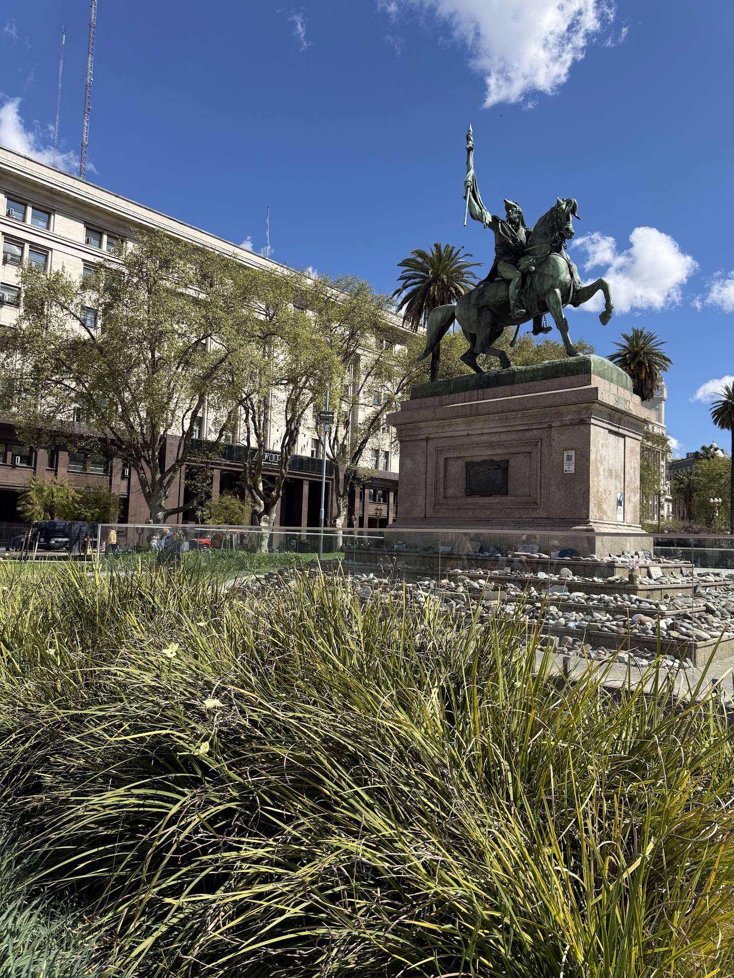 The Equestrian monument to General Manuel Belgrano is a landmark of Buenos Aires, Argentina. It is located at Plaza de Mayo, in front of the Casa Rosada. It depicts General Manuel Belgrano holding the Flag of Argentina, and it is made of bronze over a pedestal of granite.
