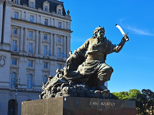 Read moreEstéticamente no es una maravilla, aunque a comparación de muchas estatuas de Buenos Aires parecería esculpida por Rodin. Para peor, fue sometida a destratos por la administración nacional anterior, que se duplicaron en el proceso de traslado impuesto por la actual. Ubicada frente al Centro Cultural Kirchner, recuerda a una heroína latinoamericana, figura clave en la independencia del Virreynato del Río de la Plata (condecorada por héroes como Belgrano, Güemes y Pueyrredón y admirada por Bolivar), patriota protoargentina de la Puna, que pese a tener su vida resuelta por la buena condición económica de su hacendado padre español, sintió hervir la sangre india recibida de su madre chola, y encabezó la resistencia de su pueblo contra el invasor imperialista, perdiendo a sus hijos y a su esposo en el proceso, para finalizar sus días en una vejez miserable, enterrada en una fosa sin nombre. Para disgusto de quienes se sienten europeos pese a ser tercera o cuarta generación nacida en estas tierras, y que desprecian a sus hermanos latinoamericanos, esta estatua y este homenaje representa una afrenta a sus repugnantes delirios de grandeza neoliberal y, por ello...