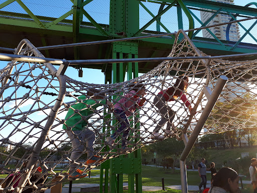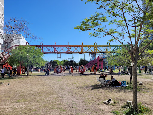 Hermosa plaza muy nueva, con poco tiempo de antigüedad. No tiene muy buen mantenimiento y cuidado, ya que se observa con pasto alto en algunos sectores y pelada de pasto mucha tierra en otros, incluso con varios tachos de basura rotos o llenos de basura hace días. Los juegos también algunos ya están rotos y sin mantenimiento. El lugar es ideal para descansar y tomar mate, hacer picnic, etc. Está en un viejo espacio ferroviario detrás del polo científico, muy bien aprovechado. En el momento que fui, el patio de juegos se encontraba bien y en uso, pero con muchos juegos en mantenimiento (prácticamente abandonados). Son juegos muy originales, con significados científicos (moleculas, adn, glóbulos, neuronas, etc.), que le dan formas diferentes a los juegos tradicionales. Ideales para los más chicos y no tanto. Cuenta con espacio también para jugar a la pelota y descansar. Está a metros de otra plaza con juegos para más chiquitos, toboganes, hamacas, etc. Y también está muy cerca del shopping a cielo abierto Distrito Arcos. Vale la pena visitar este parque y tomarse un momento para disfrutar solo o en familia, es diferente a todo...