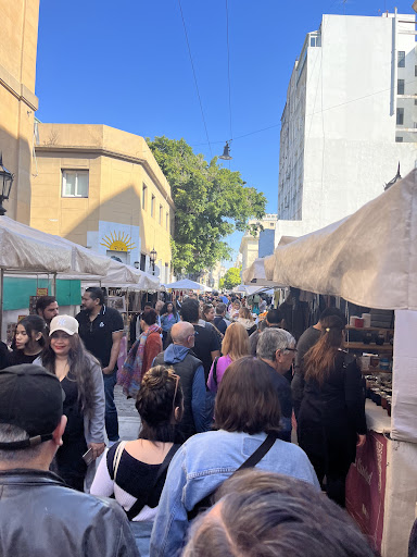 Read moreLa feria es muy linda , San Telmo es muy lindo , es historico , es donde nacio Buenos Aires , el corazon de San Telmo es la plaza Dorrego , el lugar donde se hace la feria , entonces , en la plaza , rodeando la plaza y por la calle Defensa , es donde se hace la feria , todos los Domingos , fue creciendo tanto que hoy llega hasta la plaza de Mayo , (a lo largo de la calle Defensa ) , a medida que caminas por Defensa se va transformando y sin dejar de ser interesante , cultural , entre los puestos de artesanos se entremezclan ( como en todas las ferias del mundo ) , los improvisados , que hasta venden adaptadores electricos ( muy buscados por los turistas ) , los vendedores ambulantes , cafe , tortas , empanadas , carritos apostados en alguna esquina que venden jugo de naranja recien exprimido , hasta gente que se lleva las cosas de la casa para vender , de todo , desde la gorra del Che ! , arte que suena , que se ve , que se imagina , el dato recomendable si te gusta el jugo de naranja , hay un señor que es de San Pedro , casi siempre trae las naranjas de San Pedro ( para el que no sabe , San Pedro es conocido tambien por tener excelentes naranjas dulces y duraznos sabrosos ) y bueno , si queres probar Jugo de Naranja recien exprimido con Naranjas de San Pedro , esta todos los Sabados Y Domingos en la esquina de Estados Unidos y Defensa , sobre la calle tiene el carrito , siempre se pone en la esquina donde esta la heladeria Freddo , Los Jugos de Juan Carlos , son un golazo , bueno , otro dato es salirte de la feria por un rato y comerte unos tacos , o hamburguesas de verdad , en el Banco Rojo , que queda en Bolivar entre Estados Unidos e Independencia , a mitad de cuadra , quizas compartis la mesa o te acomodas en una barra , el tiramisu es un Golazo tambien , bueno , si seguis en la feria , por la calle Defensa , otro dato es una porcion o varias en Pirilo ( Defensa , entre Estados Unidos , e Independencia ) pizza mas grandes que lo comun , gusto especial por el horno a leña , se pide al mostrador , se come en las barras , no existe el plato , ni la mesa , ni el baño ,esta pizzeria es verdadera ,sin remodelacion ni modernizacion , esta tal cual desde el primer dia , creo que abrio aprox. en 1930 , quedan pocas pizerias con ese aire magico . En San Telmo , a cada paso se te pega en la mirada el fileteado de alguna vidriera , o de un pizarron fuera del bodegon y con un acorde que suena , una pareja empieza a bailar Tango , San Telmo es Historico , desde aqui crecio...