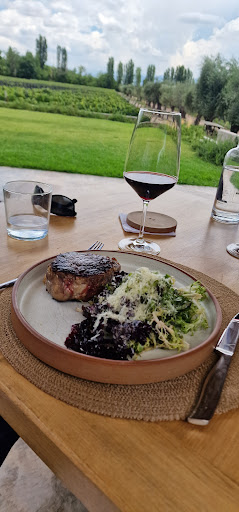 El ambiente también sumó a la experiencia, con una vista hermosa a los viñedos. Antes de la comida hicimos una pequeña visita a la bodega, que estuvo interesante, aunque nos hubiera gustado que incluyera un recorrido por los viñedos para completar la experiencia.