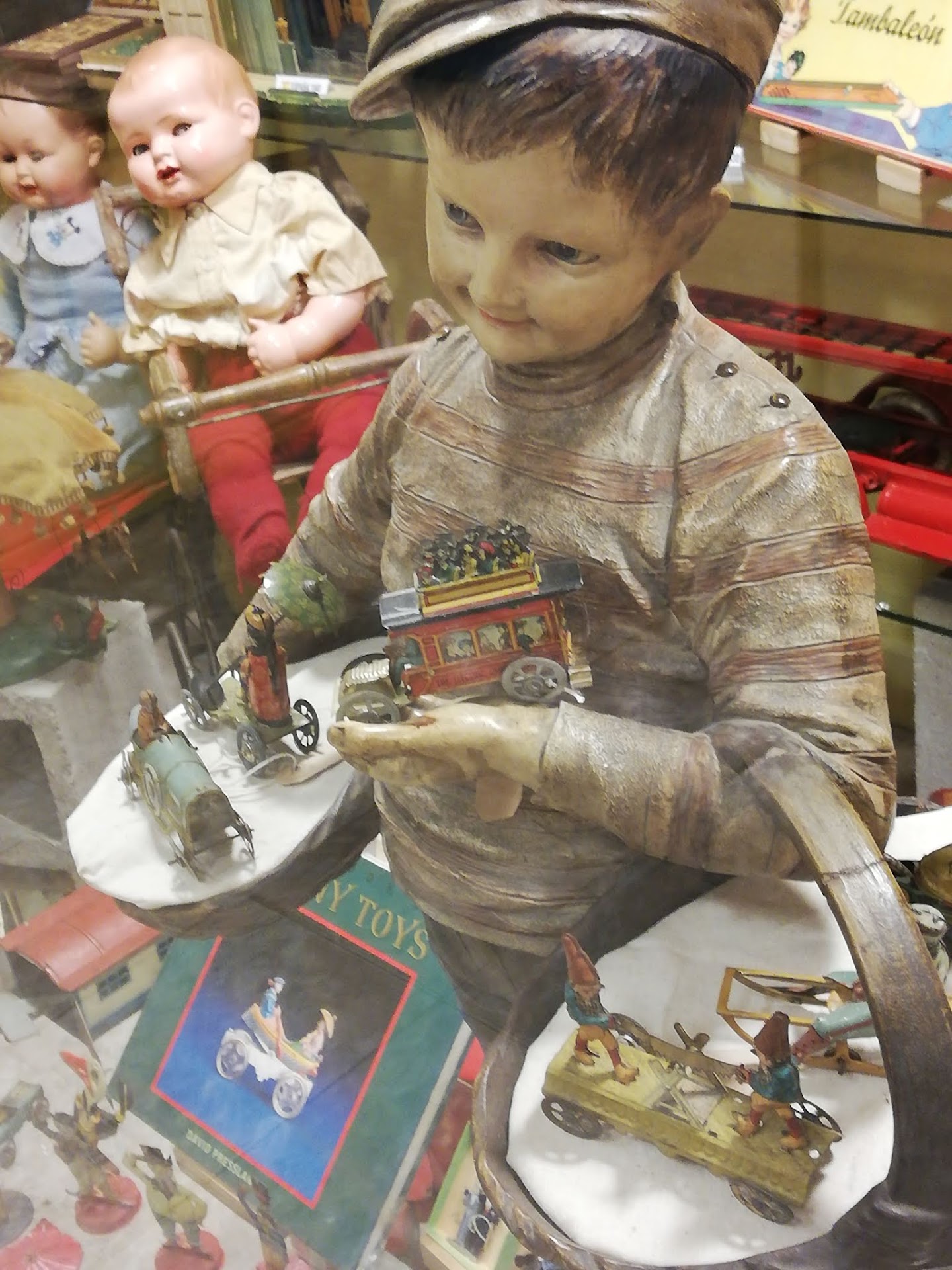 Экспозиция огромна. При входе обещают игрушки периода 1960-70. А на самом деле экспонаты начинаются с 1820. По странам: Аргентина, Китай, Англия, Франция, Япония, США, Германия. Наблюдаю здесь историю в человечества в игрушках. Деревянные, пластиковые, бумажные, металлические, фарфоровые. Самоделки из бумаги. Это целые бумажные истории. Это домашний цирк и театр, это одежки для куклы, это маски, это зверушки, которые шевелят глазками и лапками. Это все клеится, вырезается, вставляется РУКАМИ. Не там приклеишь или согнешь, и всё пропало. По годам, по странам, по тематике. Юлы (от «юла»), машинки, танки, самолеты, мотоциклы, ведерки, пупсы, куклы, конструкторы, посудки. Отдельно игрушки – герои мультиков и кино. Здесь Диснеевская мышь рулит. Транспортные средства можно рассматривать бесконечно. В каждой стране были повозки с лошадками, пожарные и полицейские машины, мотоциклы, автобусы, паровозики. И дети этим всем играли. Сочиняли истории. Бибикали и дудукали. Возили по ковру или паркету. Как-то постепенно игрушечная экспозиция перерастает в историческую. Усаживаюсь за школьную парту прошлого века. Рассматриваю наглядность прошлого века. Портреты президентов. Исторические личности. Картинки, чтобы писать по ним сочинения.Пыльные бутылки с алкоголем «из бара моего прадедушки» неожиданно сменяют школьную тему. Старые постеры, киноафиши, фотографии и фотокамеры. Рекламка 60-х. Весь этот исторический хаос, явившийся из абсолютно логически построенной игрушечной тематики, резко обрывается залом, посвященным одному человеку – Еве Перон. Богине...