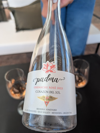 Corazon Del Sol through its owner Dr. Revana a cardiologist in the U.S. has pioneered the production of Rnone wines in Uco Valley, Mendoza, beginning in 2008. We tasted a number of these varietals including Grenache, viognier, and both red and white rhone blends. All were excellent. The rocky terra, warm days and cool nights are similar to terroir in the Rhone Valley. The ability to control supply of water through irrigation is another advantage in Mendoza. Thanks to the genius and foresight of Dr. Revana we have the first, but surely not that of these Rhone style wines from Mendoza. Staff leading us through the tasting was very engaging...