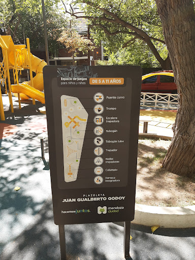 Read moreHermosa placita, con muy lindos juegos blandos de acceso público, pero lamentablemente hay papis y mamis que se suben a los mismos....Por favor no lo hagan, los juegos los pagamos todos y si ustedes grandulones se suben, los están dañandooooo!!!!.... Un poco de sentido común y respeto de los bienes públicos!!! Después muchos se quejan de los juegos rotos o cuando se privatizan los bienes y servicios públicos! Realmente mucha bronca de ver eso! Propongo que pongan carteles con la indicación más llamativa de la capacidad máxima, o de edad, algo sencillo para la gente estúpida que no le da la cosa que tiene dentro del cráneo!!!! Estos son los carteles pero la gente no nota...