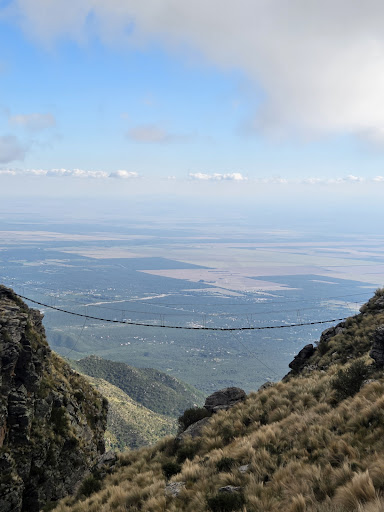 Hermoso lugar alejado del movimiento de gente del centro de Merlo. El camino te lleva sólo, es todo en subida. Asfaltado hasta que llegas a una parte donde es tierra y ripio pero se puede transitar tranquilamente con auto. Vale la pena llegar hasta ahí. Es otro mundo. Solo escuchas el viento. Almorzamos en un parador grande que tienen bien ambientado para recibir a los turistas. Es un restaurante, confitería y salón de té. No hay mucho para elegir pero lo poco malo que ví ni vale la pena decirlo porque está todo hecho para que la pases bien y encuentres la tranquilidad que buscabas. En el lugar tienen las paredes revestidas con cuarzo. Me pedí para almorzar un lomito completo (vean fotos) y me gustó mucho. La comida la entregan caliente y las bebidas son de primera marca. Sentarse a almorzar con esas vistas hermosas no tienen precio. Te atienden muy amablemente. Pagando en efectivo te hacen descuento. Tienen baños limpios y wifi. También hay un lugar donde podés comprar recuerdos y productos regionales. En el lugar se pueden hacer actividades pero la mayoría las hacen los fines de semana, por ser temporada baja. Aprovechamos para hacer una cabalgata que nos costó $20.000 por persona. El guía es muchacho joven de campo y es muy amable. Los animales son muy mansos y conocen el camino. Fecha: Agosto 2025. Es un lugar para sentarse y pensar: por qué hay que vivir siempre acelerado? Mientras mirás un cóndor pasar por arriba tuyo.. RECOMIENDO el lugar y la cabalgata y más cuando dejas el...