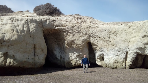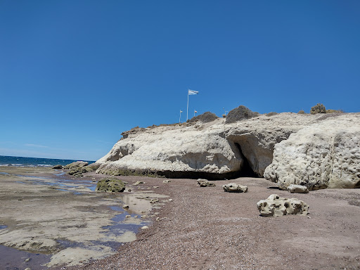 Se ubica en la playa debajo del Monumento al Indio. Pueden verse las históricas cuevas que realizaron los colonos galeses al llegar a estas tierras, pero también otras inmensas que realiza el mar, junto con una hermosa vista de la ciudad. Este paisaje esculpido por el agua tiene mucho de fantástico con altas cuevas y formaciones arcillosas cubiertas de mejillones. Parece un set de filmación de Star Trek! Algunas precauciones: 1- Atención a la marea, ir cuando está baja e irse antes de que suba. 2- Aunque ningún cartel lo advierta, es posible algún tipo de derrumbe. Pero el problema es otro: Hicimos con mi esposa una linda y larga caminata desde el muelle de la ciudad hasta allí (unos 8 km), subimos hasta el monumento, donde hay una vista fantástica y quisimos tomar algo y conseguir un baño: IMPOSIBLE!!! Lo único cerca es el Ecocentro que estaba cerrado ese día (de estar abierto, no sé si hubiésemos podido utilizarlo). No hay kioscos, almacenes... nada! Un barrio muy exclusivo con casas...