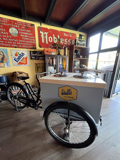 Además, tiene un espacio que simula un bar antiguo, repleto de objetos vintage: ✔️ Cámaras viejas ✔️ Productos de supermercado de época ✔️ Mesas, teléfonos, maqueta de trenes, etc