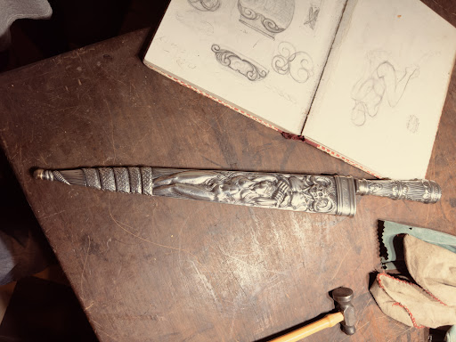 Read moreThis is a working silversmith that learned from his father. This gentleman is very creative and talented. He made a solo trophy that was commissioned by Queen Elizabeth.