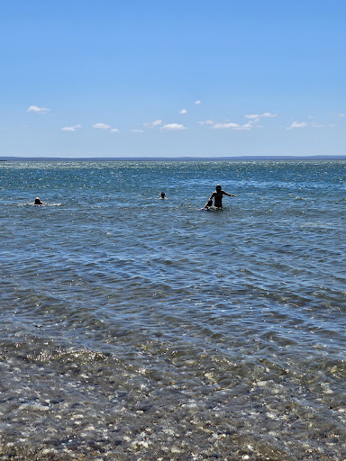 Buena playa. Agua cristalina, sin olas. Podes ir con niños, la van a pasar bien, eso si, a cuidarlos y cuidarse porque no hay guardavidas en esa zona, de todos modos no es profundo mientras se este en los primeros metros de mar, cuando fui el agua me llego a la cintura a los 10 o 15 mts de la costa. Como sugerencia, hay que usar ojotas en la playa, pero ya adentro del agua no hace falta. Se puede ingresar con el auto sin problemas, el camino es de ruta y al final para llegar a la costa es de ripio, pero se va bien. El estacionamiento es sin costo (Enero 2025, no se si ahora cobran algo...). Hay un parador para comprar agua caliente, churros y algunas bebidas (gaseosas, licuados, daikiris,etc), se puede pagar con efectivo o mercado pago, recomiendo efectivo porque a veces la señal de celular no es buena. Recomiendo revisar tabla de mareas para ir en un horario donde el agua este alta, para poder disfrutar del mar un poco mas cerca. El lugar es un area protegida y no se puede pisar los caracoles con vehículos. No se puede prender fuego. No hay camping. Sin arboles, sin sombra. De todos modos se disfruta mucho el paisaje. Ambiente muy tranquilo. Agrego algo que es obvio por las fotos que adjunte, pero aclaro por las dudas; no es playa de arena, es de conchillas y piedritas. Esta bueno porque después te subis al auto...