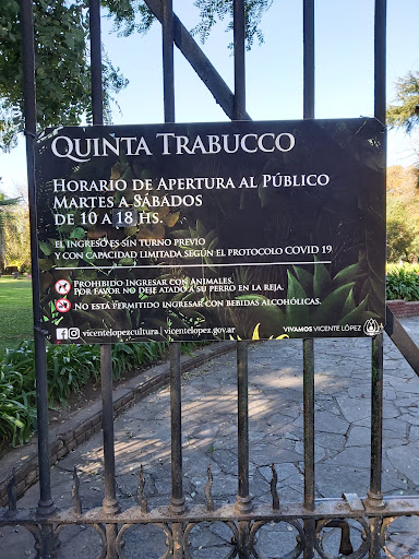 Read moreUn DOLOR ver ese espacio rico en Historia de nuestra localidad, y en Naturaleza , convertdo apenas en un "galería de Arte" y eventos... NINGUNA referencia a su historia,a la memoria local q esa vieja quinta y su parque grandioso significa para todos.SIN referencias escritas a sus donadores, o carteles informativos sobre árboles, antiguos macetones descuidados. Dale lástima ver las letras" Quinta TRABUCCO",vaciadas de significado para quién lee ,sobre un panel con dibujitos de una selva tropical!!!!? Ignorancia pura o desdibujar a propósito la identidad de una comunidad (paso siguiente: avanzar ahí con edificios siempre es más fácil donde "nada" había......?! Ni libro de visitantes tiene y ,lleno de pobres gatos ,algunos enfermos, por todo el...