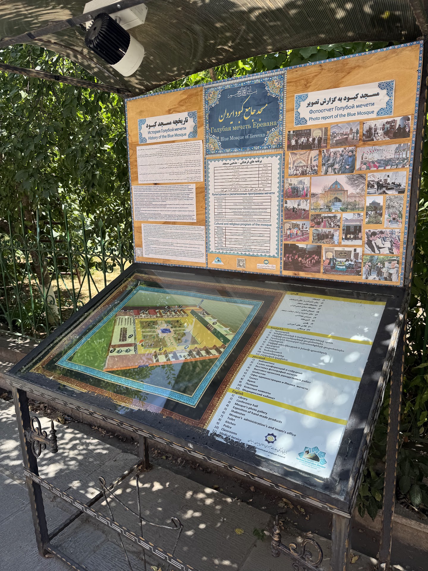 Read moreThe Yerevan Blue Mosque welcomes guests with luxurious decorations. The entrance is richly decorated with colorful mosaics and ornaments. Once inside, you will find yourself on a neat patio, surrounded by a garden with mulberry and apricot trees and rose bushes. The complex also includes a gallery with several rooms, an administrative office of the Imam of the mosque, the police room, a kitchen, a first-aid post, and classrooms.