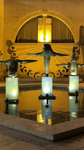 • Description: A statue of three divers in various flipping positions, made of stunning golden/brass-colored metal with intricate stitching.