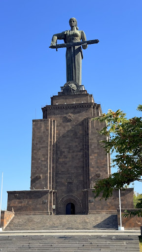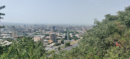 THere are three levels, I think to the top. The pleasant color of locally quarried stone line the stairs, alcoves and buildings along the way. The stairs are comfortable in their width and height for anyone to comfortably make their way up. There are plenty of options to sit along the way, mostly the medium walls bordering the vegetation. Each level provides an option to rest and take in the view below. As you get to the immediate top...the is unfinished construction which seems to have stopped a while ago. Deeply excavated ground with some laid foundation and rusted rebar columns left bent out of shape. I hope they haven't given up on this. THere is a way to go past this fenced of area along a maintained path and a short walk through a neighborhood uphill. A further climb up the stairs reveal a square with the monument on one side and a spectacular view of the city and mount Ararat on the other. The square is dirty, appears not maintained . There are benches for sitting there as well. If you have enough energy I would recommend walking a bit further up the street and going under an underpass to the other side of the street and taking a short walk toward the tomb of the unknown soldier with a large statue, an eternal flame and again beautiful views...