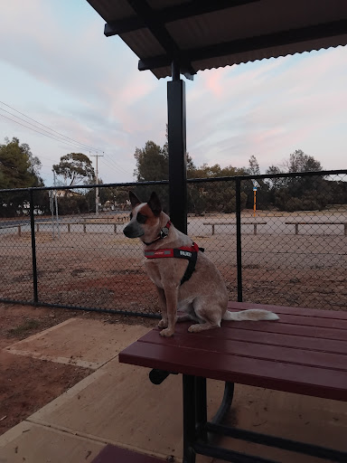 Great surrounds, an open paddock behind the dog park,children's fenced play area near by dog park has agility equipment inside, probably more suited to larger dogs, it has a water fountain and poop bags, plenty of roaming room, seating for pet owners, a beautiful lake near by with lots of wildlife,(remember bread is like poison to ducks and the waterways so feed them corn,peas and lettuce or bird mix),there is a walking trail right around the lake, and also a bmx...