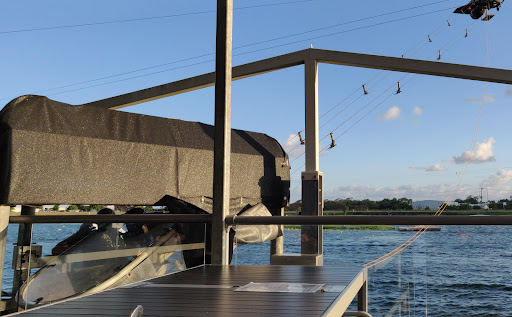 Read moreSaw their Facebook advert offering sunset views and live music on Friday nights - sounded good. Got there early, picked a seat out of the sun and a good view of the activities on the water. Ordered drinks and sat back to enjoy. Then we were asked to move so they could accommodate an event. Soooo we enjoyed the blocked out view of the rope set up, the thudding noise of the engine behind us and in full hot sun. Opted not to order food or further drinks. That said - we'd try again and hopefully give 5 stars. Seems like a good place to enjoy the hot weather with some water activities by day and drinks under the fairy lights on the...