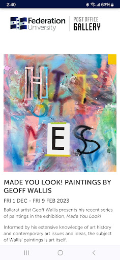 The Post Office Gallery is a university art gallery in Ballarat, Victoria, Australia. The former Ballarat Post Office is located on the corner of Sturt and Lydiard Streets.