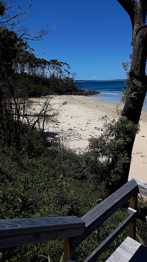 Smaller beach, lovely sand and not so crowded. Resonably steep access on well-built wooden stairs. Peaceful, although as elsewhere in Conjola National Park, beware falling dead tree branches from the fires. One heavy enough to knock me out (while on the stairs) came down about 3 metres away. Just below me were 3 adults and a baby climbing up; we were all lucky. The time between the 'crack!' when the branch separates and it hitting the ground - or you - is a second or two; little time to take...