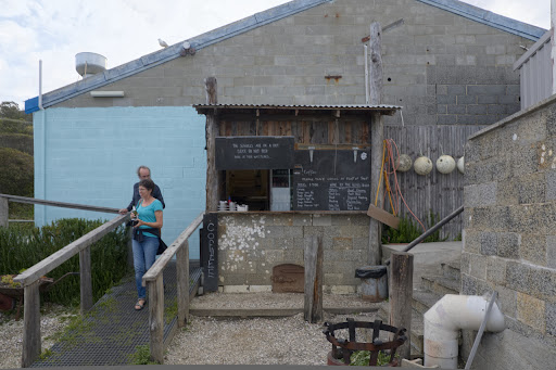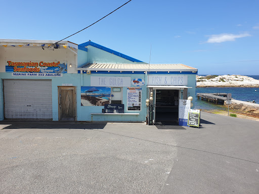 S41°52.417' E148°18.627' On the harbour front of Bicheno, this fish & chips shop has expanded its activities to include a boat shed to eat fish. Order at the front, take-away at the back or eat in the shed. Beside fish, there is also beer and Tasmanian wine per glass are for sale. The name “The Gulch” refers to the craggy rockscape of the small Governor Island and the Bicheno shoreline in this deep ocean ravine, where the town's fishing fleet shelters from the Tasman Sea swells.