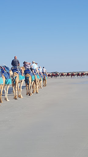 I was very perplexed on which Camel tour to use in Broome (there was more than one option), so I diligently read others reviews. I easily worked my way down to 2 companies, based on the reviews, then actually finally choose Broome Camel Safaris (blue camels) because of the reviews and the company's response to reviews (even a negative review) and I am really happy I did. People are not going to always be perfect (we are all human), but we can always learn, forgive and offer grace to one another. Alison responses to one such review I found very kind and gracious...and that stayed with me. I also chose Alison as she was the first and original Camel lady, and she seem to have an genuine heart and care for the camels. They also were very cost effective and, at the time I went also offered a free pair of pearl earings to the ladies. Alison and her team were prompt, kind, friendly and very accommodating with photo taking (always asking if we wanted them to take photos of us at various times throughout the ride). We had a camel called Amos, who was initially having a stubborn camel moment... Which animals can have moods too 😊However, Rather than reprimand, hurt or punish the camel, Alison and her team gently and calmly unhooked Amos the camel, walked him on separately, calmly spoke with him to comfort him, patted him and them gave him some carrots. Then reattached him to the line and off we went with no issues at all. Alison and her team actually very much care for the camels and it is very obvious and evident in his the talk to and treat them. The ride itself.... Was absolutely Wonderful. They have a platform to mount the camels making it comfortable and easy access. The ride was relaxing and rythmatical (made up word to explain the forward and back camel sitting motion). We did the sunset tour and the timing was perfect with the sun setting on the way back and was magical. The beach and scenery were beautiful, especially the sun set. We thoroughly enjoyed our tour and I firmly believe that if someone is doing a good job, you should let them know.... So, thanks to Broome Camel safaris (blue camels), Alison and your team... You did a great job and we really enjoyed...
