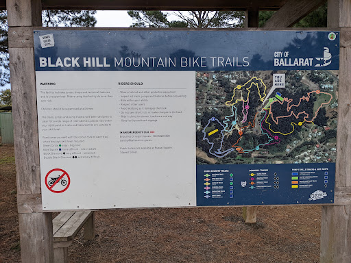 The Black Hill Reserve includes the Black Hill lookout, offering sweeping views of Ballarat and the surrounding district to the south. The reserve has also become a focal point of downhill mountain bike riding in Ballarat. Six cross country trails, four downhill trails, two pump tracks, skills area and advanced jump park are open for use.