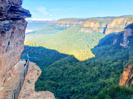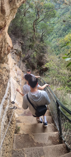 Dizzying! Chances are if you hike to the base of Wentworth Falls, you'll descend the Grand Stairway. Looking out over the Jamison Valley from Fletchers Lookout, it seems impossible that there is a route in the sheer rock faces leading to the valley floor. Yet a team nicknamed "the Irish Brigade" in the years 1906-07 using shovels, pickaxes and dynamite managed to construct a breathtaking and dizzying stairway which is reported to be 'the tallest outdoor stairway in Australia'. The descent/ascent of this steep stairway is truly fantastic! PS: not recommended for people with a fear of heights, dizziness or...