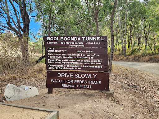 Read moreIF IN THE VICINITY pay a visit. 30km inland on the Mount Perry road to Monto. Check this information and colonial railway tunnel absolutely teaming with bent wing bats. Keep the noises down or you will wake up the 20000 bats that call this 200m long tunnel home. Nice and cool and would make a great home as it is only about 25 degrees inside. Smell a little funky. Started out fun then got a little scary as we woke them up. See videos. Awesome sight....