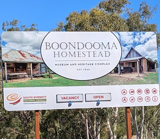 Boondooma Homestead was the centre of the original Boondooma Station, which was settled in 1846 by three young Scotsmen. It was originally bounded by the hill east of Proston, Brovinia Creek to the north, Darr Creek to the south, and the Dividing Range to the west – a total of nearly 1,000 square miles. The homestead is one of the few remaining examples of an elegant wooden home built 1854-55. Visitors can walk through several buildings constructed in the 1850s, and spend time in the gardens, enjoying trees and vines also dating from the 1850s. Many/some people find connections with family members who lived or worked on Boondooma Station in...