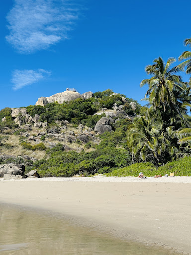 It is one of those beaches that just feels perfect. it is not very big, but still didn't ever feel too crowded. There are rocks on each side of the beach that can be climbed and explored, making for some fun picture opportunities. If you are looking to stay moving there is also a hike up to the lookout on the south side of the beach. You can even rent gear from the local resort and snorkel or dive if you are looking to see some coral and small fish and have no fear because it is protected. There are toilets and showers there right by the parking area and if you get hungry you can go to the resort or the café that is right next to the beach. The trees that are near the beach make for great hammock holders and some provide good shade as well if you have had enough of the sun. Speaking of the sun, you should watch it rise early in the morning because it will provide a pretty epic view and picture...