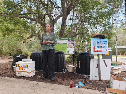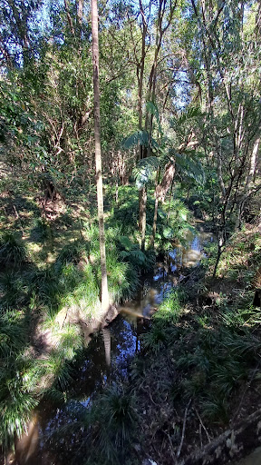 A great little interp centre with a small meeting room that doubles as a cool experience of the forest on dusk (complete with animals in the rafters). There's fish tanks mimicing a creek and a catchment map and some history of the area on the walls and usually a kids area with a story chair, a puppet theatre and a bunch of soft toys to keep them occupied for a bit inside. Outside there's a great playground tree house with spider web and rope swing.(There's hidden creatures to find all over the tree house). 4 Free electric BBQs, 4 shelter sheds and an outdoor classroom area. There's a water bubbler near the playground, general and recycling bins and a community compost hub that's free to join (register online). You can get walking maps (including a kids trail map version) that can send you on up to 7kms of trails over into Chermside hills from the centre when its open and they have good bike maps of the area too. BCC Ratespayers can even pick up their 2 free native plants/financial year and some good planting advice from their staff when centre open. There are some large lights that come on at dusk but the Carpark can shut from about 7pm and only fits about 24 cars before you're parking out on the busy road! So carpool there just in case or walk/ ride if a local. It's on the downfall creek/ nundah creek bike path. And it's only 15mins ride from Westfield at Chermisde. The Brisbane circle bus line stops just outside the site so that's another good car- free option. Toilets are sometimes a bit messy but mostly functional. Across the road is a dog off least area and another bigger grassy area for kicking footys or flying kites etc. Inside the park dogs must be on leads attached to you (lots of free ranging kids about) and clean up their poo too (No excuse). I think what makes this reserve even better than most is it has a fully inclusive walking trail just beside the playground. The senses trail is the only one of its kind in SEQ. It is completely sealed bitumen or wooden boardwalk track, has kick rails and hand rails and stations all around it with Braille and raised lettering messages. So popular day visit spot for groups with...