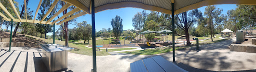 Well maintained, family-orientated playground park. There's something here for most people. Toilets, 3 gazebos with seated tables and BBQs, multiple tree-shaded seated tables, shaded play areas, drinking water, paved bike/pram trail and bench seats scattered along the path. There's 2 play areas, 1 for youngsters (furthest from the main road) and one for slightly bigger kiddies. In total there's 6 swings (3 with back supports and safety chains), 2 slides, 2 spiderwebs (climbing nets), 1 modern tyre swing, some musical equipment, a sit on roundabout, climbing chains and a few exploring/imagination/creative play items. Oo.. there's also a small workout gym. Heaps of trees, heaps of birds... Heaps of cars going by. Loved it but one star off for lack of...